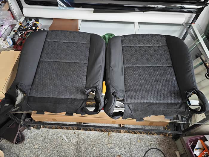 座套四周都有皮带挂钩 要拆下!注意 后边两侧的皮带不太好拆 要用尖嘴钳子和铁钩 !装的时候更费劲 要有耐心,其实这两个皮带也可以不装的,我是有强迫症 没办法!必须装好 和原车一样才行!