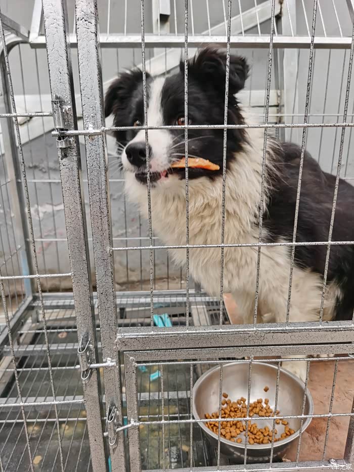 老板家的边牧。我喂了一条肉干