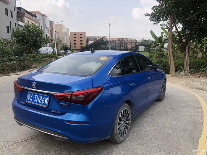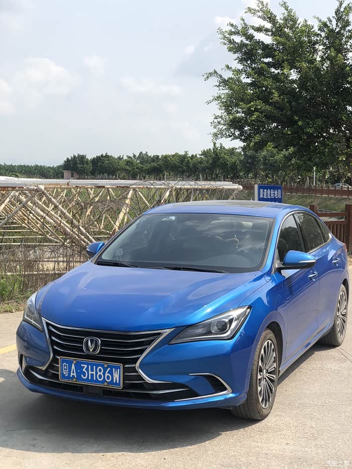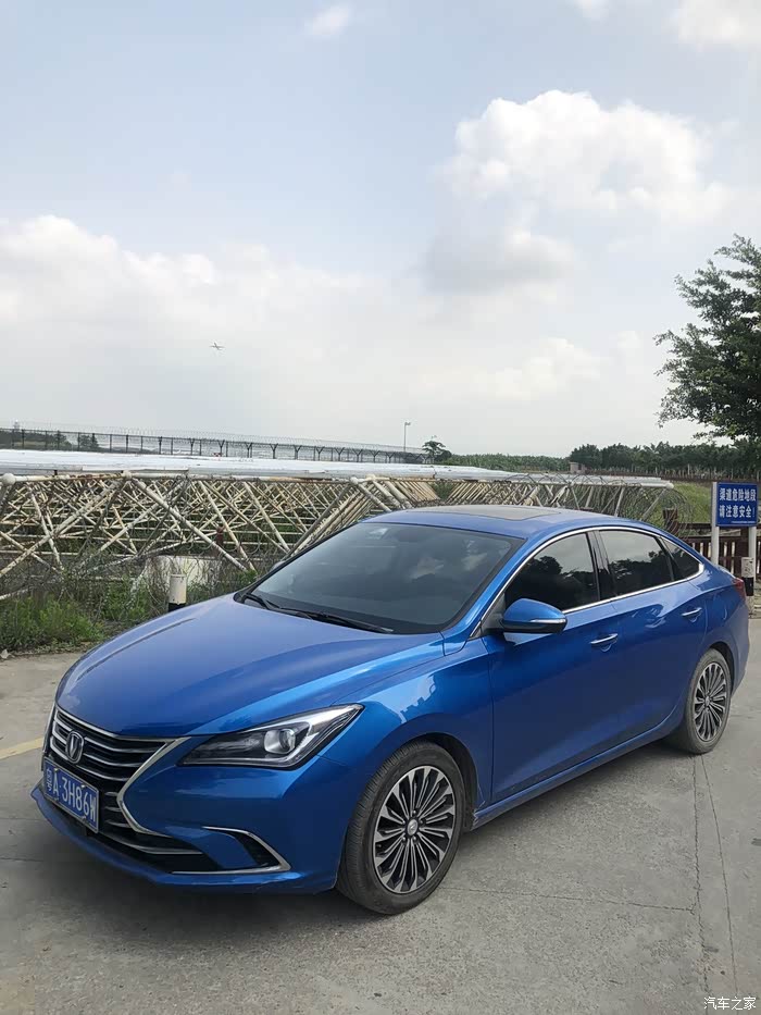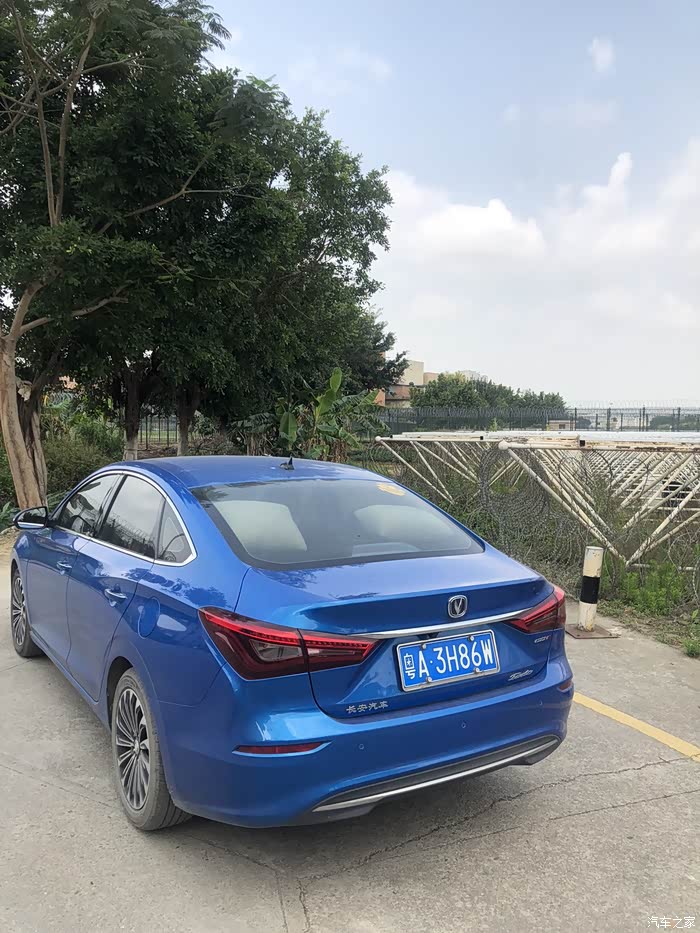 蓝天白云的映衬下蓝色逸动格外引人注目