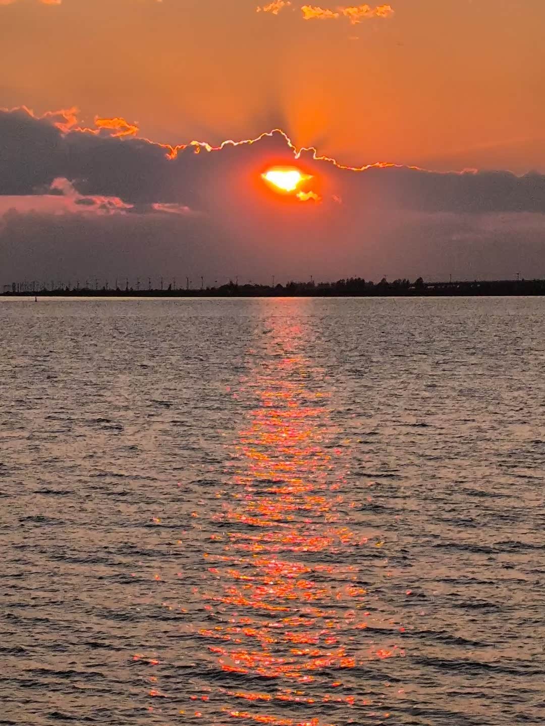 海水与大辽河水衬映下夕阳。