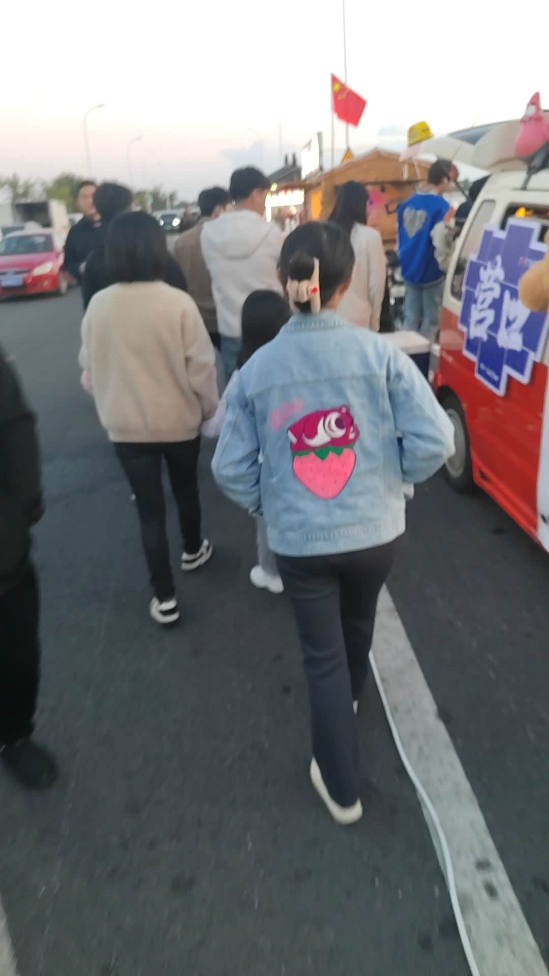 一家人在海水和河水交融的岸边逛夜市,过去来过两次这里都是平平静静的地方,现在多了好多摆摊的地方。