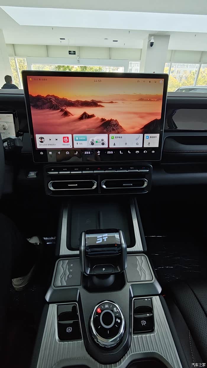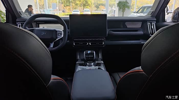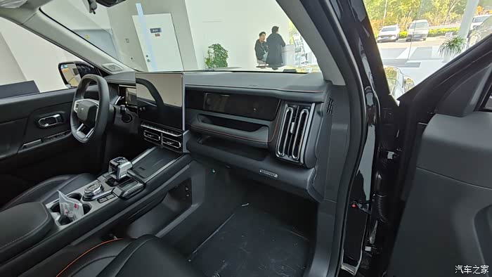 然后说说大的内饰感受吧,展厅里面的展车是黑色的,看起来比较敦厚大气,内饰大多数地方也采用了软材料,上车之后的味道也比较轻,车顶材质没有和 t2 一样做翻毛材质,而是使用了织物面料