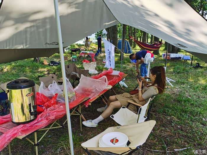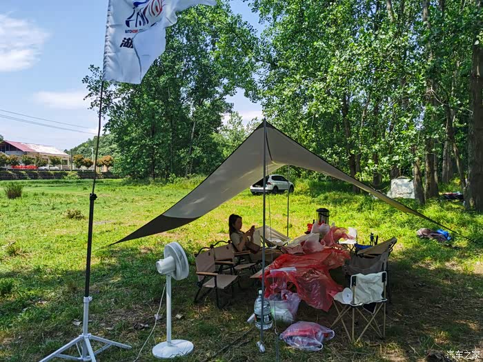 在等待其他车友的之时,先把露营的基本装备布置起来。
