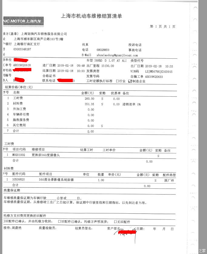 荣威ei6质量堪忧4S推诿,更换车门、2次更换摄像头和充电装置,