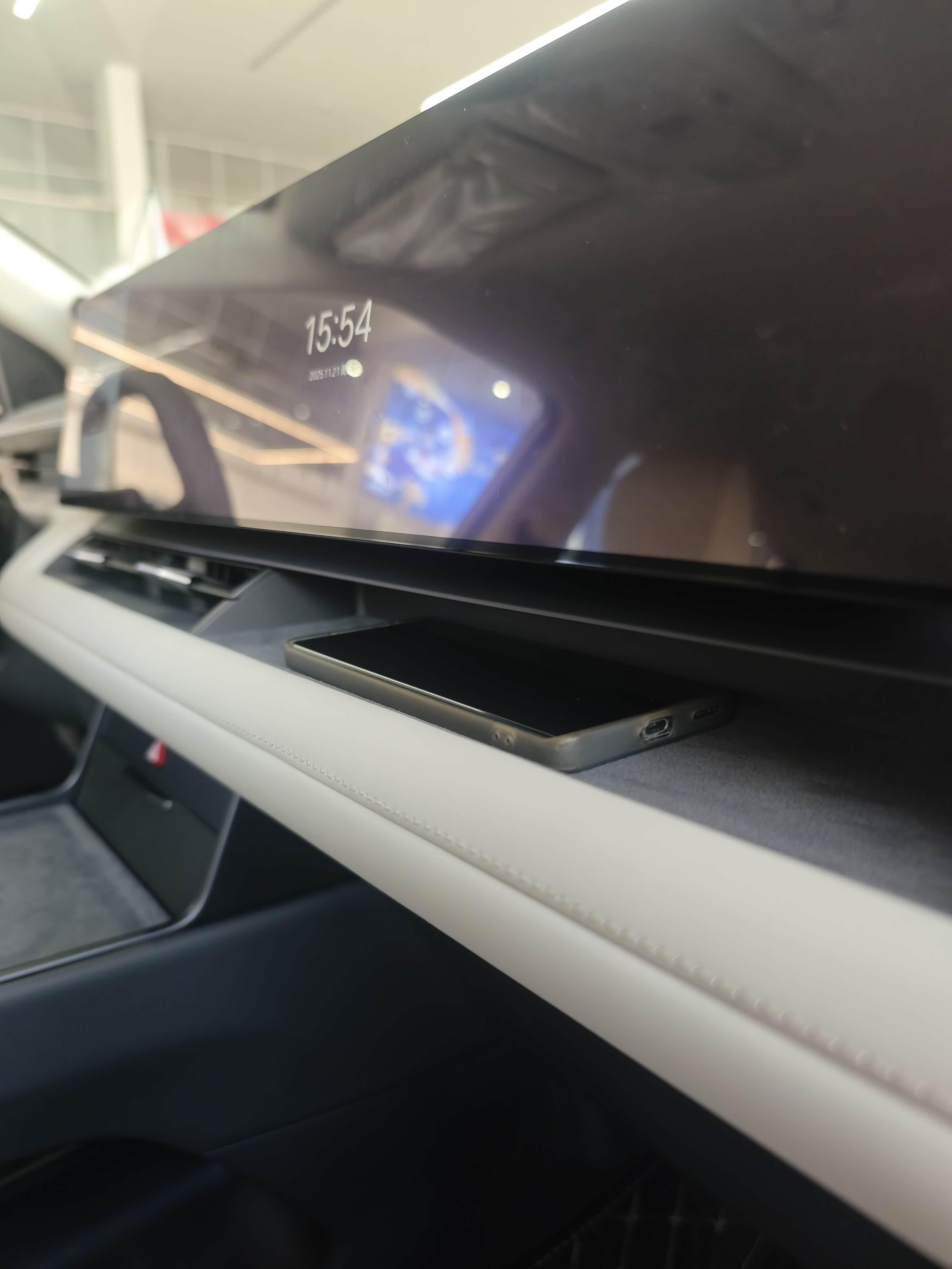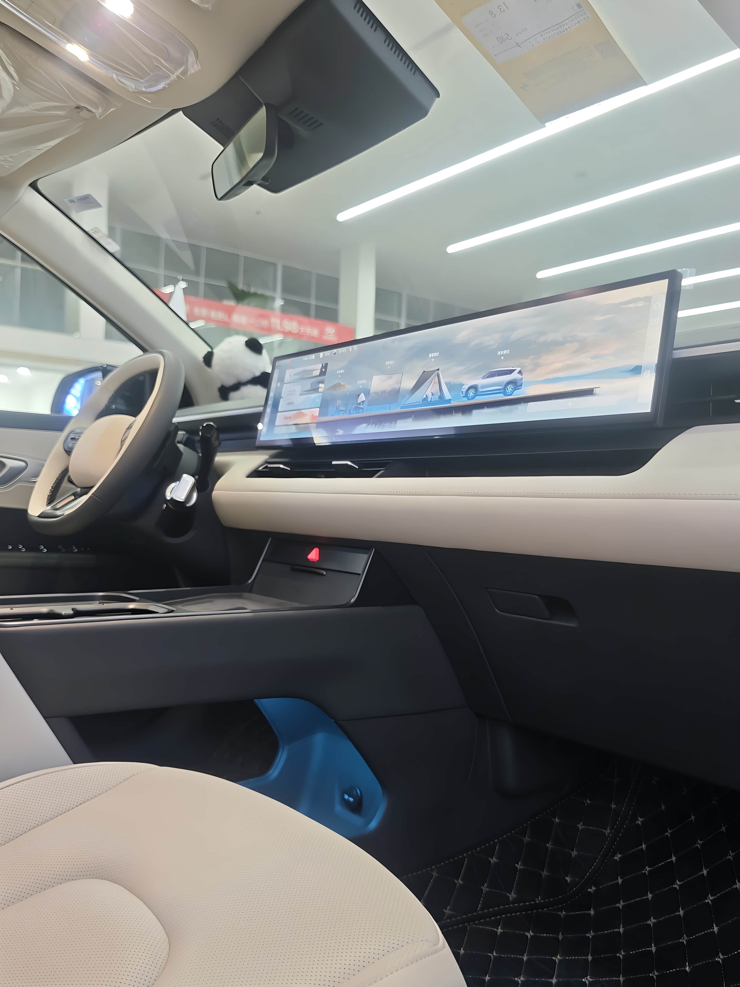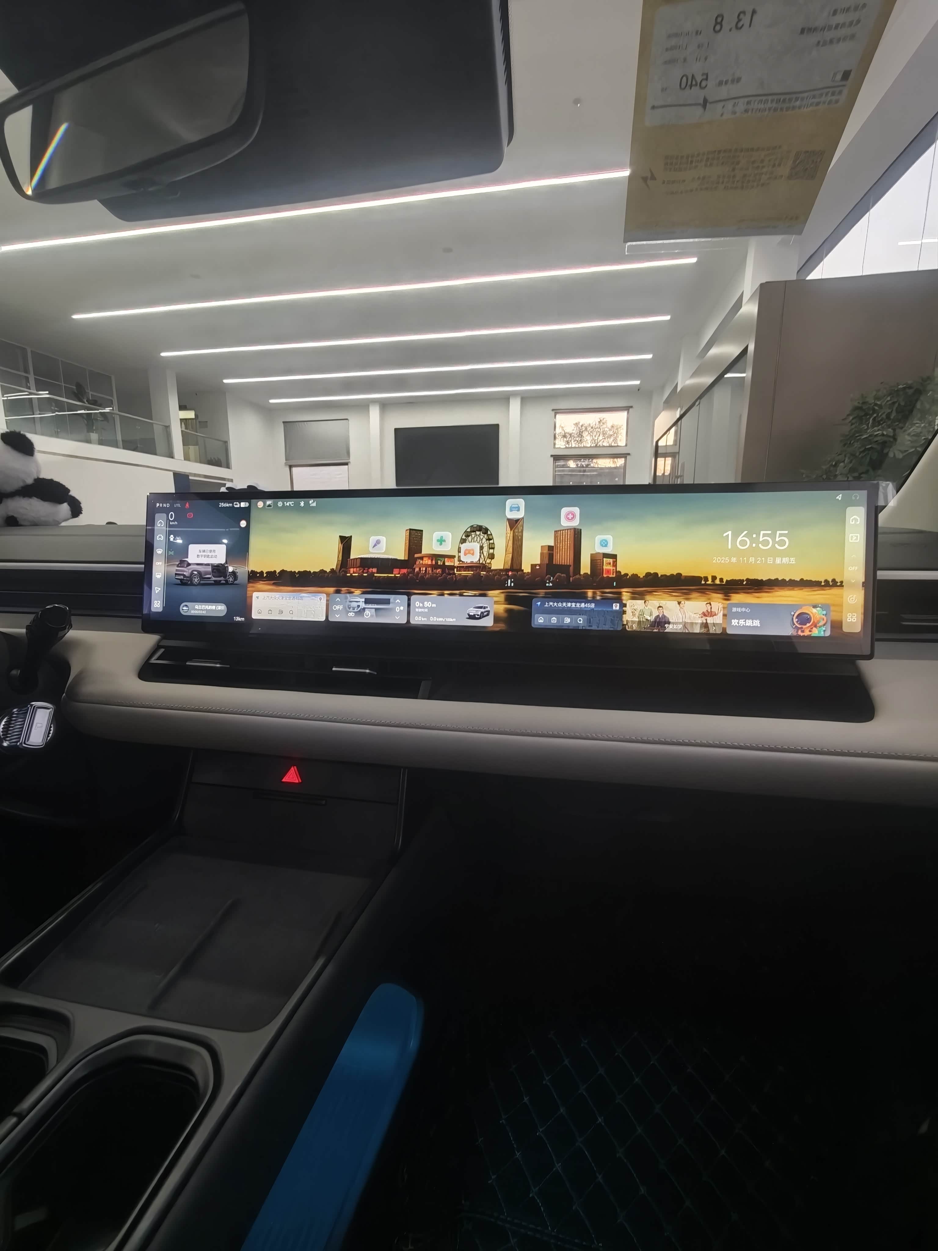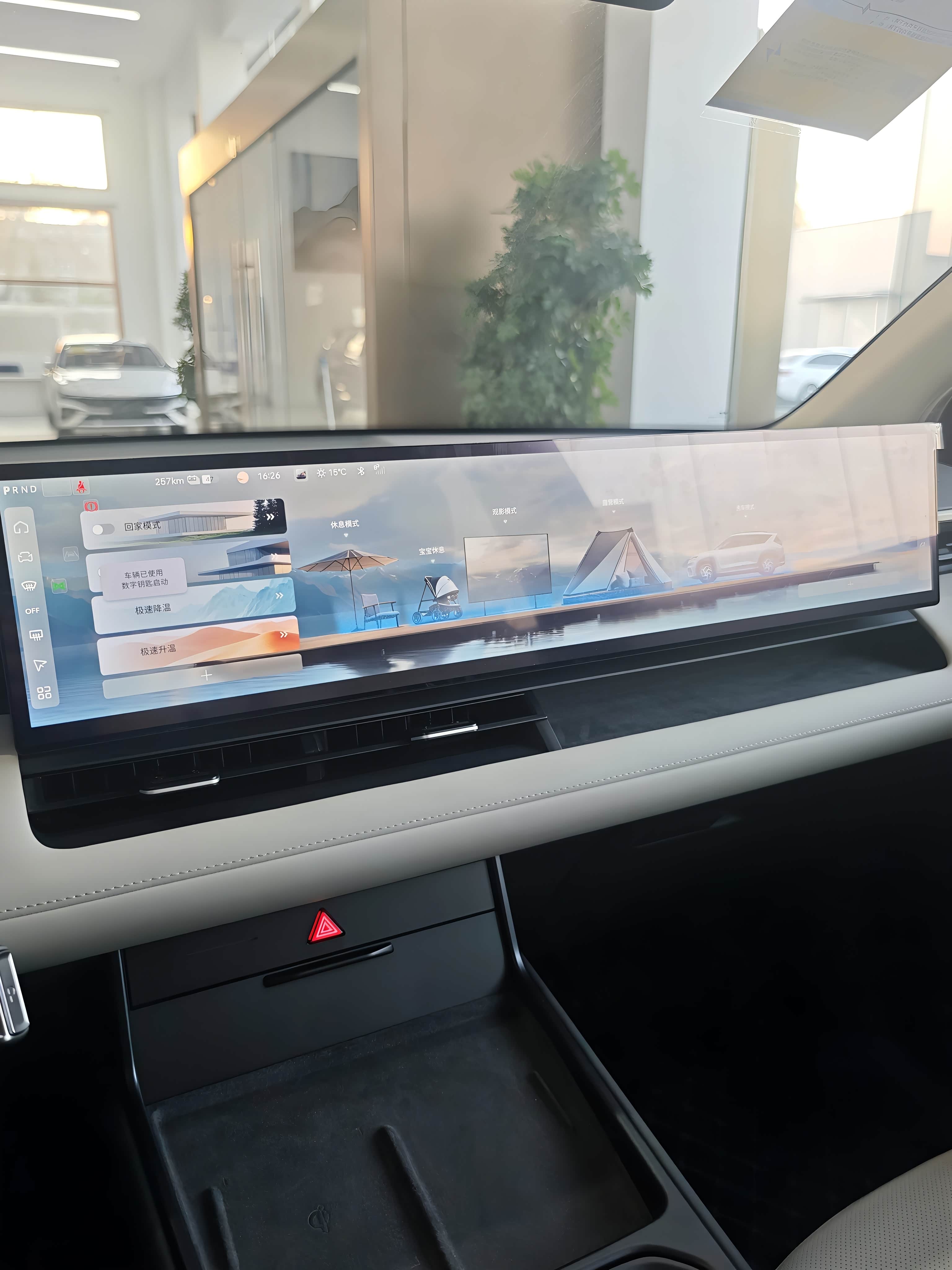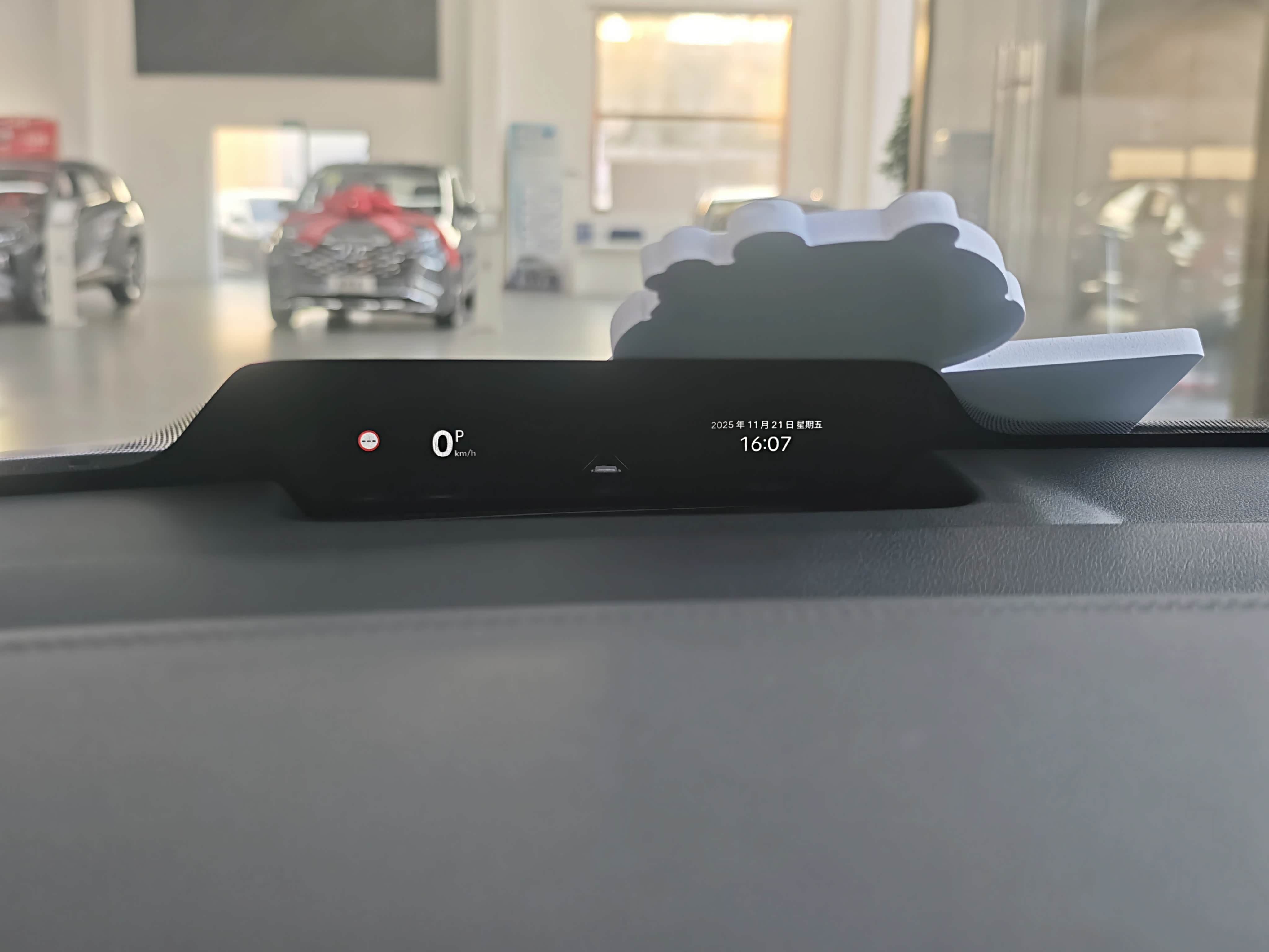 除了超长带鱼屏,驾驶位前部的小屏有点类似小米YU7上的天际屏,能够显示续航里程、行驶状态、多媒体等基本信息,看起来很实用,相较于传统的HUD,这种小屏在逆光状态下显示效果更加清晰,最大程度保证驾驶者不受光线的影响,唯一不足就是屏幕能再大点就更好了。