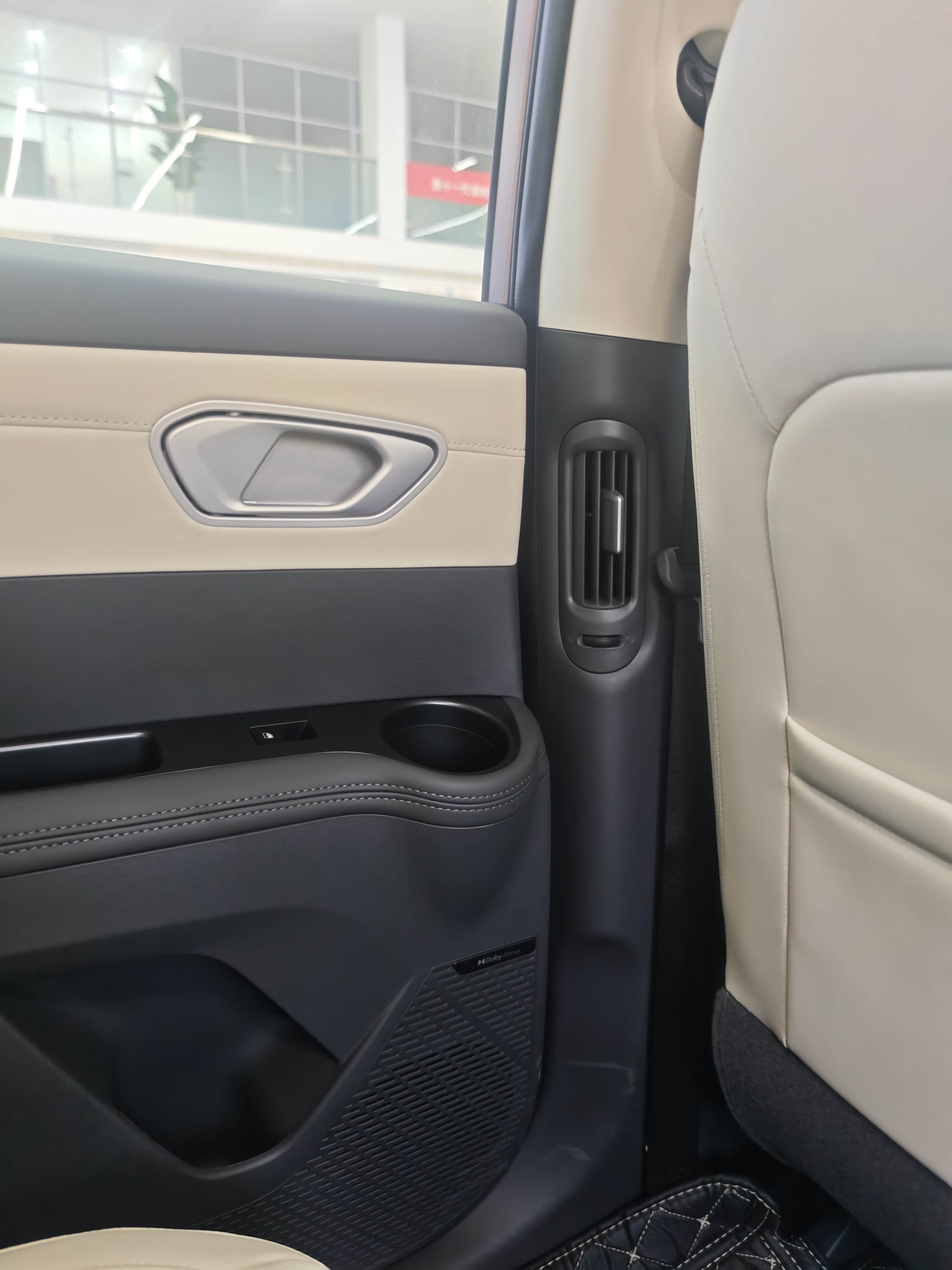 由于后排中间设计了一个超大储物槽,所以后排出风口被安排在了B柱,这对于我们这种有孩家庭是非常友好的,孩子坐在后排中间,能够避免被空调直吹。