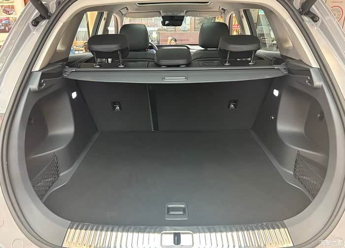 再看下车辆的后备箱。一个标准的很好用的尾箱,可以容纳超多的行李箱,它的后座靠背放倒之后,是平的,没有台阶,所以你冬天出去滑雪,滑雪板直接怼上来,然后去露营的话,把座椅放倒可以在这里小躺一下,非常的惬意。