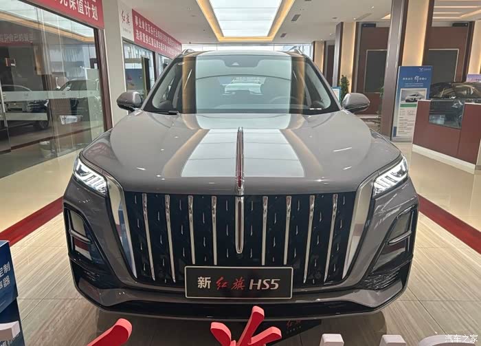 今天试驾完车辆,我想谈谈自己的感受,就HS5而言,其实它是一个很多人喜欢的车,很多人在买车的时候会选择把这个车放到跟合资品牌,或者说甚至把它当做是我们中国豪华品牌这样去考量的这台车,全新改款后的红旗HS5,它最大升级就是前脸,现在这个前脸,就套用了红旗最成功的家族前脸,直铺式的格栅,加上一条耀眼的红色的旗标,在你每次走近车的时候,开锁关锁,它会像流水线一样点亮起来,非常有仪式感。包括旁边的灯也是跟前面的格栅完全融合在一起的,这个车头是这台车我觉得最有价值感的地方,因为我下了飞机,我在机场找这台车,真的就一眼就看到了几百台车,远远一眼就能看到它啊,这个前脸真的是很有识别性。