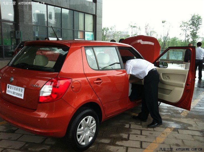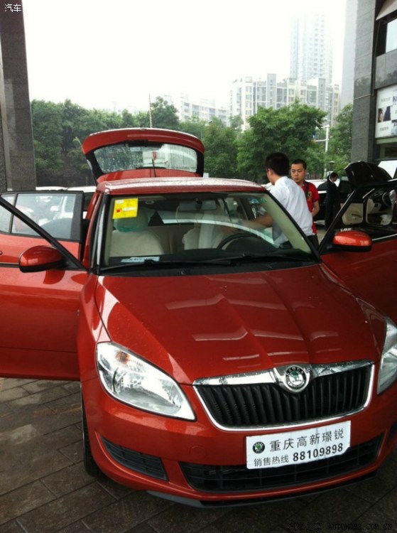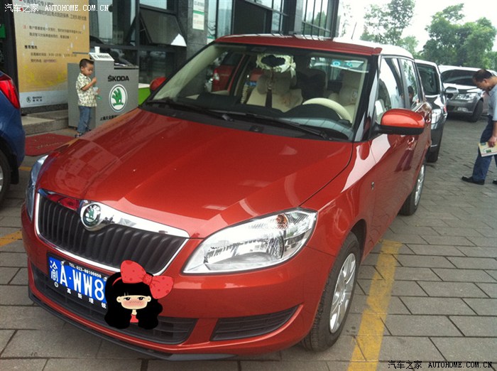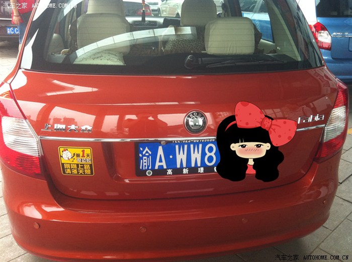 之前看了polo,雨燕,还是被小晶晶的性价比吸引了,空间大,价格实惠,果断下叉!一直喜欢的是激光蓝配白顶,论坛里面格格那个车车我是相当喜欢,可惜没有现货,好嘛,就紫铜橙,本来要加价500,最后我直接说,加500我就不买了,哈哈哈,销售人员不可能因小失大,就成交了!