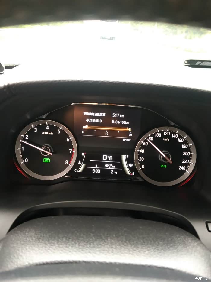 坐标东莞,开车过佛山,有三十几公里的塞车市区路,有六十几公里的高速路,全程运动模式,使用手动拨片。车系四驱高配来的,全程没超过110时速,即是没用到9档。油耗5.8