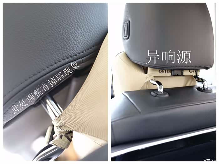 2,16小改可调头枕调整里面的软塑料,调整时会有摩擦掉下的屑,头枕由于采取可前后调节,偶尔有小异响