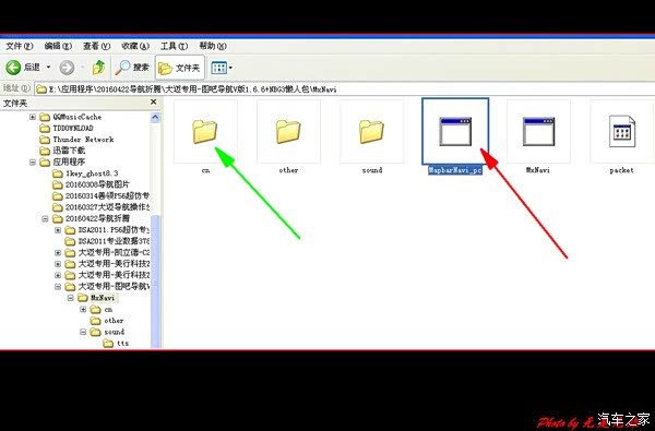 2、下载完成后,在 MxNavi 文件夹下 cn 文件夹中删除不需要的省份(拼音文件,一般都能拼出省份名)就可以达到瘦身目的(下图绿色箭头所示的文件夹)。