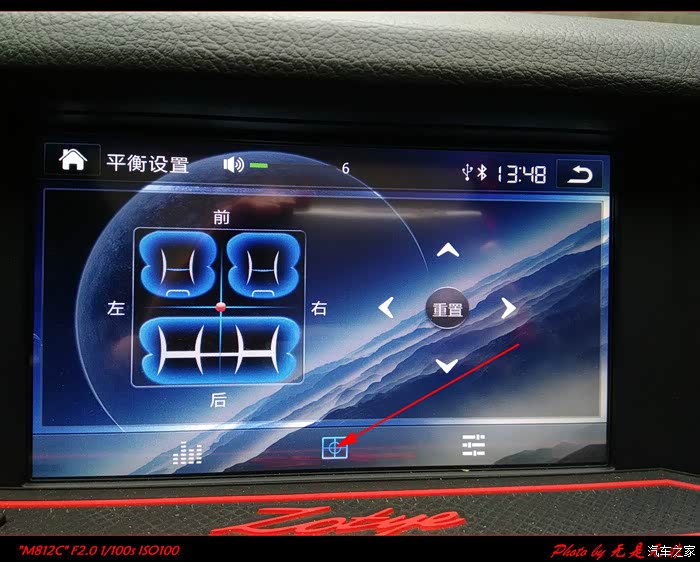 5、在中间“平衡设置”界面,注意前、后、左、右的音响要平衡。