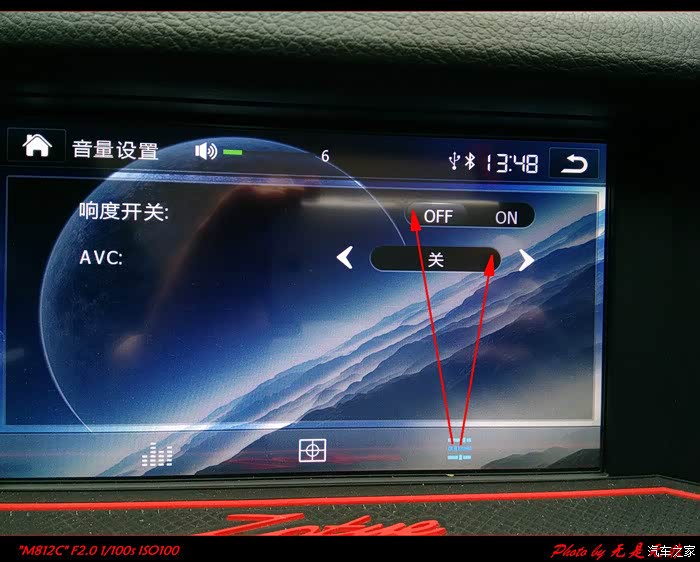 6、在右边的“音量设置”界面,关闭原车的“响度开关”及“AVC”。
