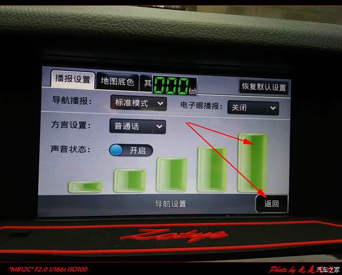 19、用善领引导图吧地图导航时,导航音量设置点箭头所示处。