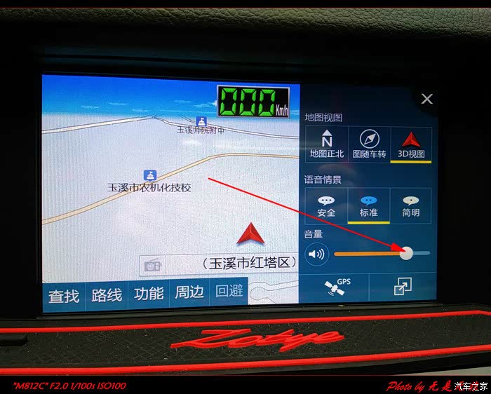 17、用善领引导凯立德地图导航时,导航音量设置点箭头所示处。