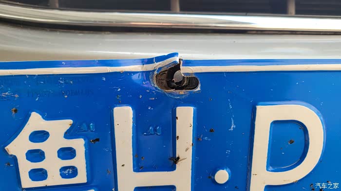 车牌安装框在不更换的情况之下只能简单处理了,热熔以后胶粘,然后车牌整形