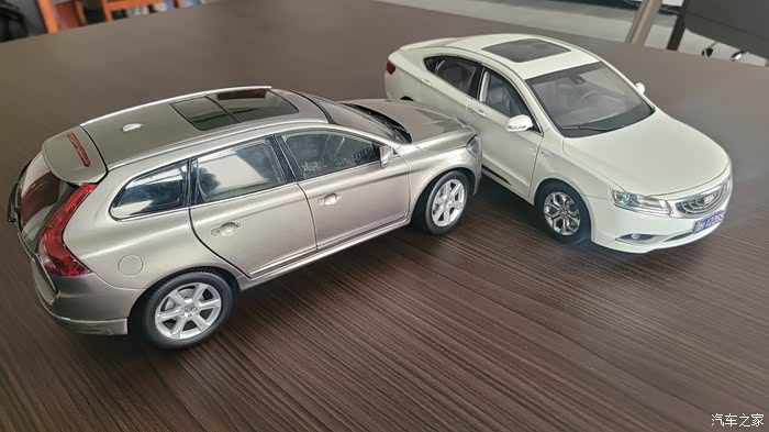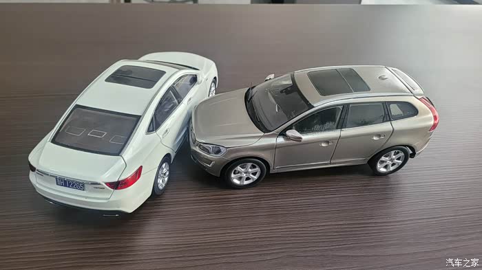 现场照片没有拍摄很多,所以让我的沃尔沃车模和博瑞大白来还原一下当时的现场图片,清晰直观:我刹停的瞬间,对方车辆用侧车身剐蹭了沃尔沃的前脸,造成损伤。