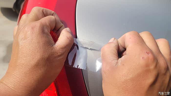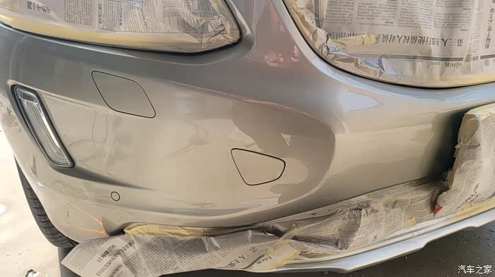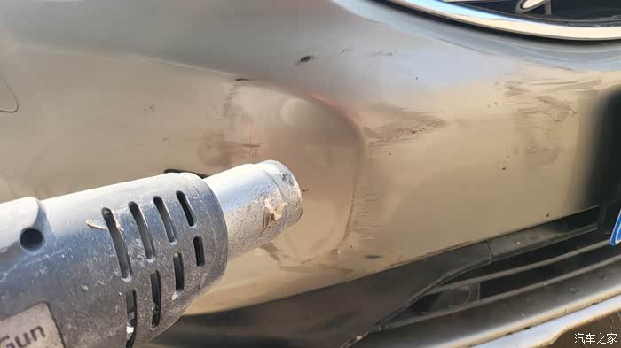 由于这个前保险杠是非金属复合材料的,阿张用着热风枪一吹,也就10秒钟,蹦的一声,凹处自己弹回来了,那感觉太爽了
