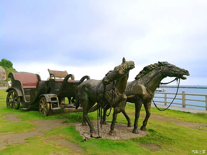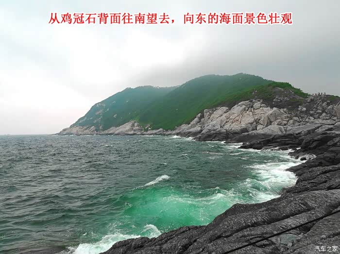 过了公鸡孵蛋雕塑后下到山脚,才发现居然是码头,就是我们上岛的地方。反方向继续往鸡头景区驶去,是鸡冠石景点。从景点脚下沿着石阶攀爬,翻过鸡冠石,原来柳暗花明又一村,背面的景色叫人眼前一亮。
