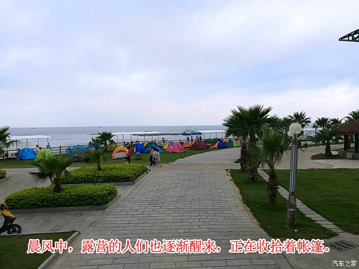 路过露营区,在清爽的海风吹拂下,露营的人们也逐渐醒来,正在三三两两的收拾着帐篷, 偶尔交谈着,似乎在交流着昨夜的感受。