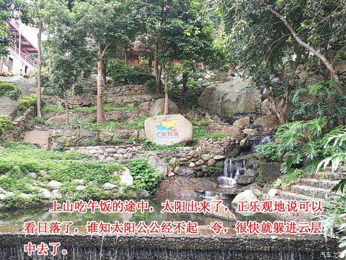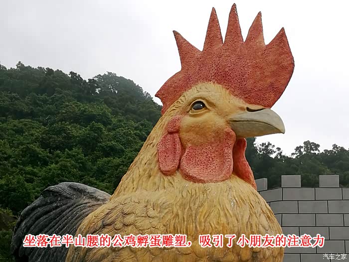 辞别了孔雀继续下山,远远地看到一只大公鸡蹲在半山腰,孩子们雀跃着跑过去合影。