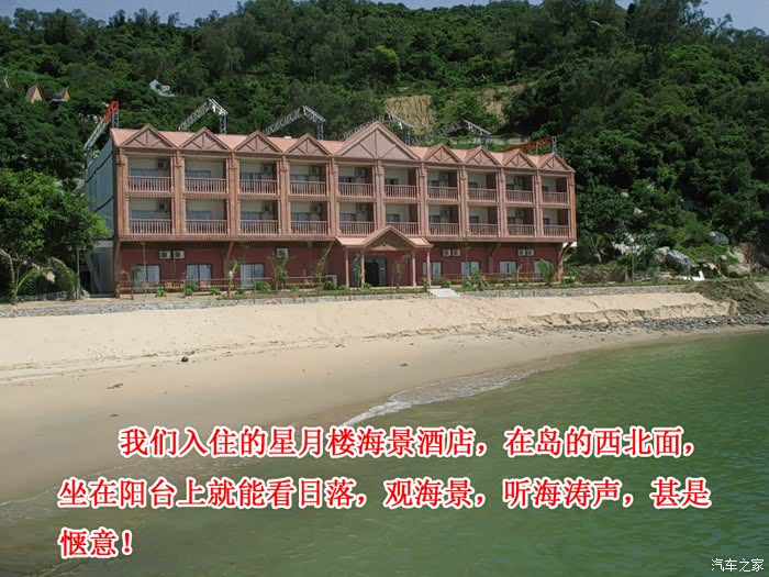 我们入住的星月楼海景酒店坐落在岛的西北面, 而我们的房间刚好在三楼的最尽头,推开落地玻璃门,阳台上摆放着玻璃茶几和两把休闲藤椅,坐在阳台上就能吹海风、看海景、听海涛、观日落。除了日落今天怕是没法看到了之外,其他的安排,甚是惬意!