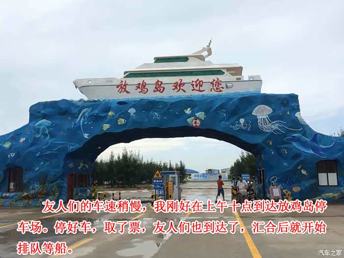 友人们的车速稍慢,我取了卡,停好车,去窗口取了预定的船票,并买了孩子们的船票友人们也到达了,汇合后排队等船、登船……