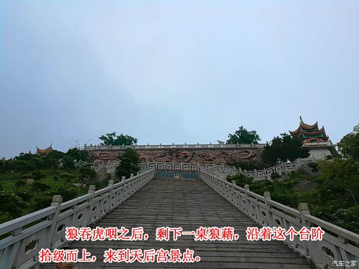 台阶很陡,拾级而上很是费力。有招呼拍个合影的,孩子们却不理会,自顾着攀爬上去了,我们只好跟随着。台阶爬尽,视野突然开阔了,原来这是一个叫做天后宫的所在。