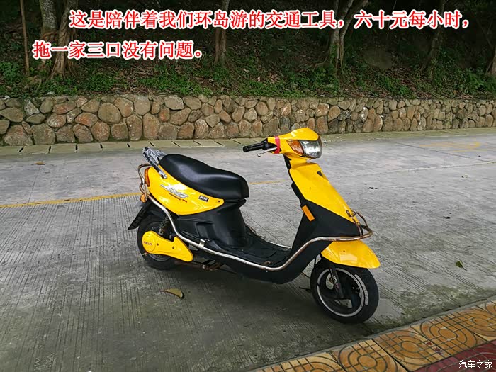迷迷糊糊间也不知道睡了多久,友人夫妻俩过来喊,说去租个电动自行车环岛游。妻欣然答应,一家人起床来到楼下,聚齐了几家人后来到午餐地点的旁边,各家租了一辆电动自行车开出来。