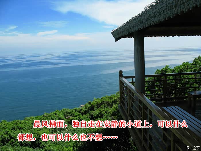 一路走来,天色不是很明朗,但是空气清新、海风舒适、心情爽朗!晨风拂面,独自走在安静的小路上,可以什么都想,也可以什么都不想……