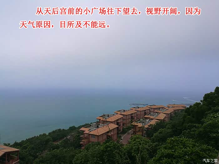 从天后宫前的小广场倚栏展望,视野很好。红的屋顶,绿的树木,灰的天际,蓝的海面,尽收眼底。然而因为天气原因,就算站得高也望不远。