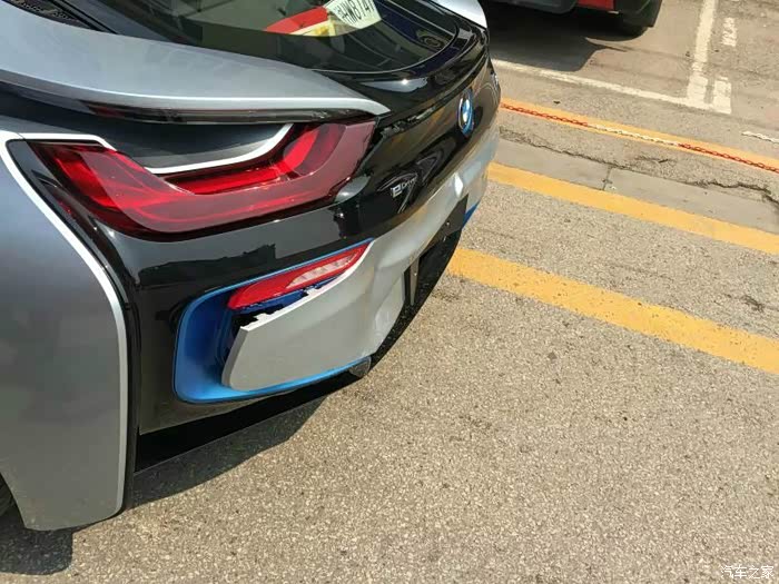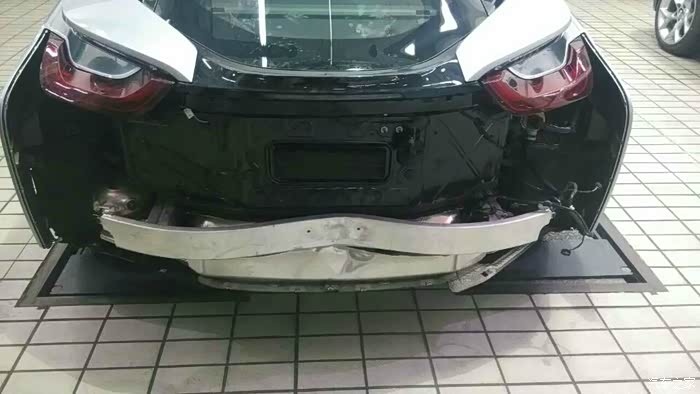 定损还是比较迅速的 主要就是后保骨架 后保险杠 后围板 变形 PDC倒车雷达探头损坏等 必须说 i8碳纤维车架很牛 静止状态下被追尾 对方车头爆 自己车架完好无损
