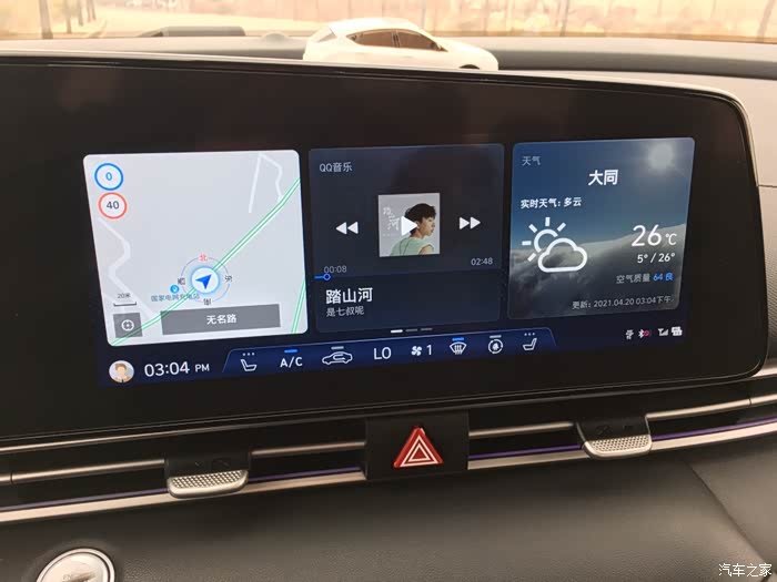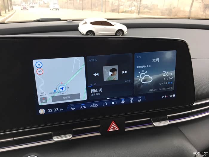 咱们打开大屏,首先映入眼帘的是3块小分屏,分别是地图、音乐、还有天气,我个人觉得这3个是咱们上路最有用的3个功能!