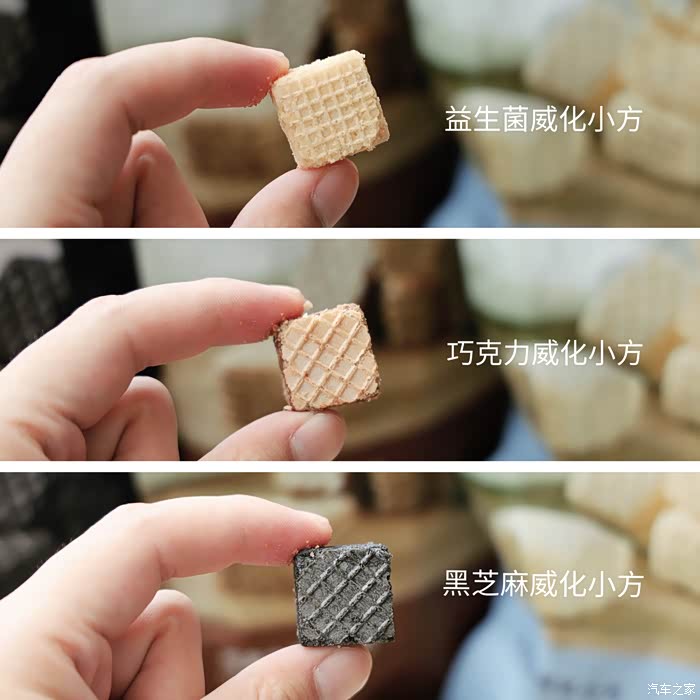 入手的是三种口味组合装的威化小方,分别是“益生菌、巧克力、黑芝麻”口味。平时最爱的就是巧克力口味的零食,但介个威化小方竟出了个益生菌口味的,纯纯勾起我的好奇心。