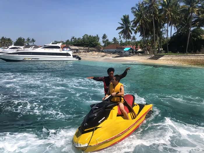 第一个玩的水上项目,也是最刺激的单人项目,叫水上摩托。当地人最喜欢在起步的那一刻急速甩尾,快速激起浪花,因为他们看到对方游客和自己的小伙伴被浪花拍打,心里很是满足;然后这时候你会看到两只摩托就在大海上“你追我赶”,如果你喜欢速度与激情,这个项目,一定不要错过!!