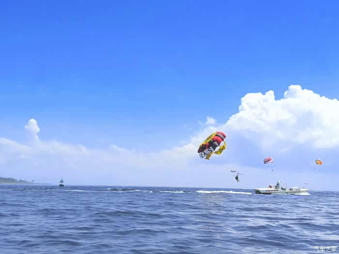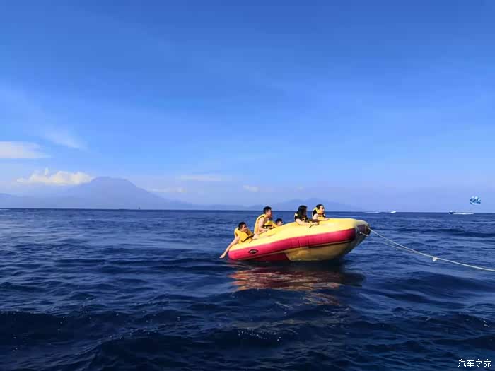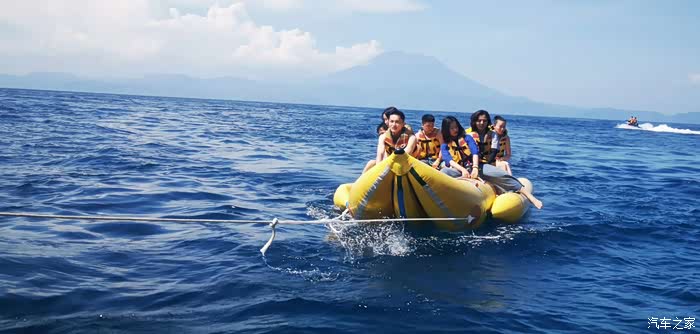在海上乘坐香蕉船,一路高呼"fast、fast、fast“,手一定要抓紧,因为转弯过快,稍不留意就飞出去“喂鱼”了