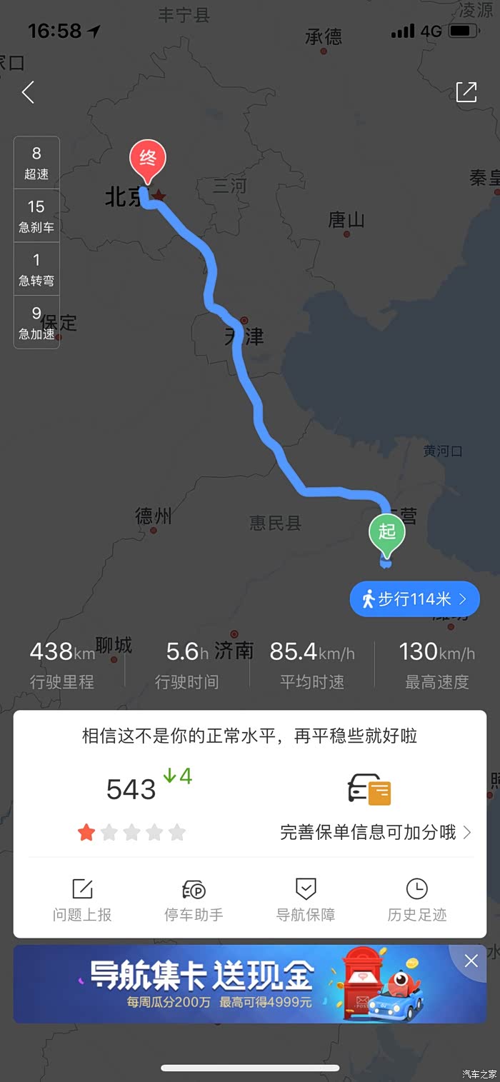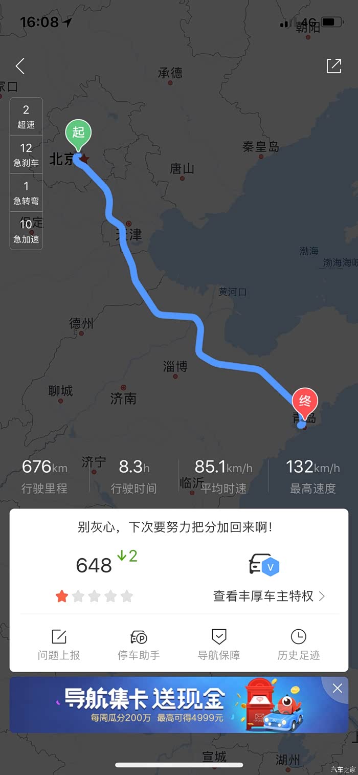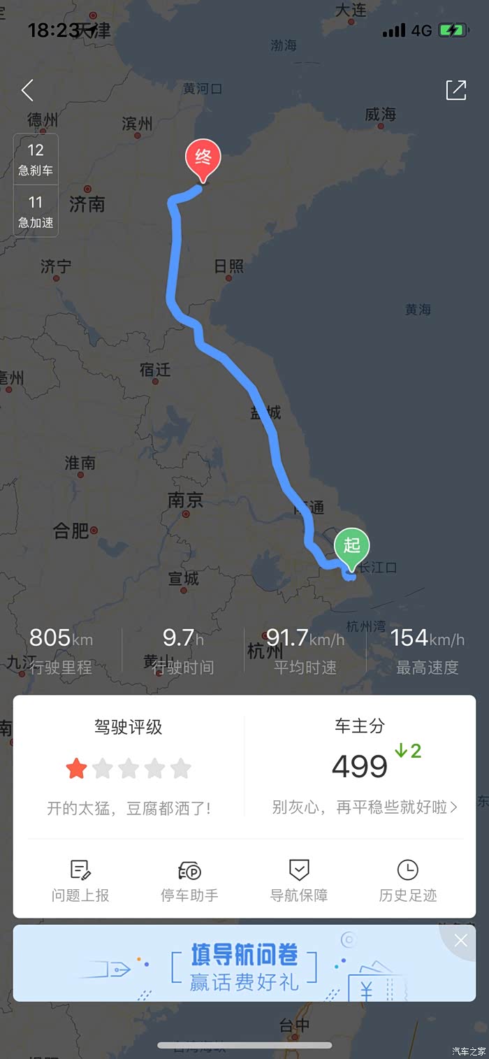 这是上海到青岛的路线800多公里,9个小时