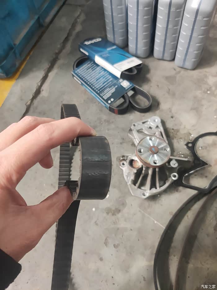 因为水泵漏了异响所以更换全套皮带和水泵,拆下来的正时明显有裂痕了,他家的美孚有点贵加机滤要价575,防冻液也是美孚160,正时套装水泵刹车油自带的,工时是400还是可以的,换完后抖动减少了很多,估计上次在别家加的是假机油,