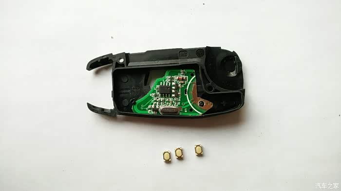 改装过程需要将原电路板分解,重新焊接三个按键以及线路,机械钥匙胚打磨,将折叠钥匙塑料壳开个小槽等工序。