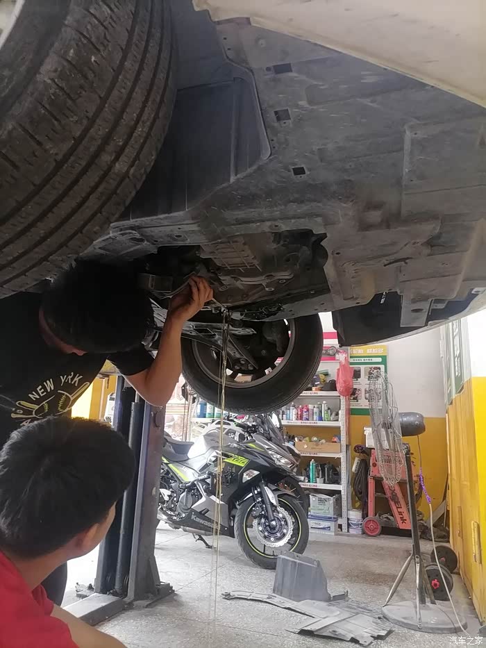 需要拆下左前轮一侧的下护板,不然没法放油,油底壳也下不来。