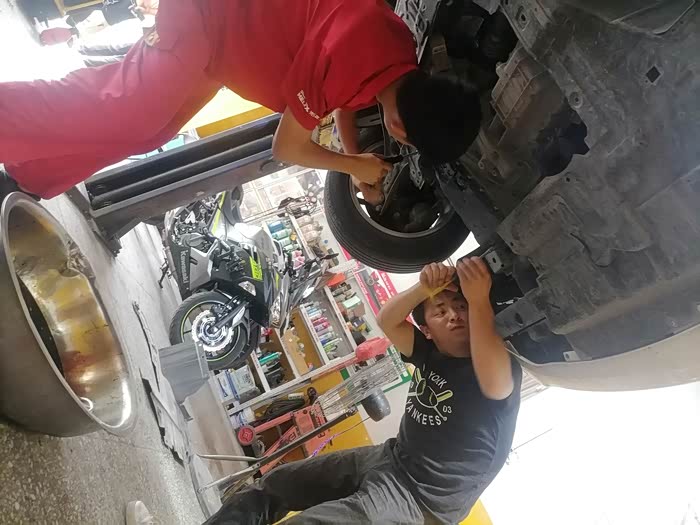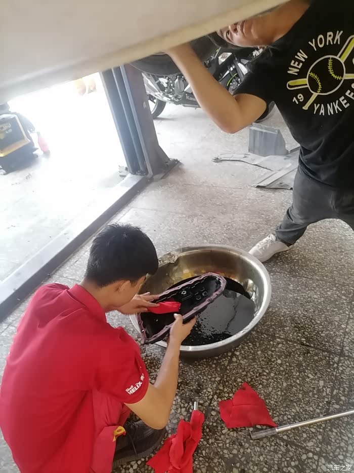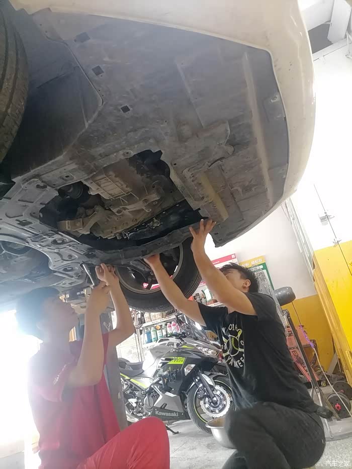 2位帅哥正帮着清理油底壳和清洗变速箱底部油腻。(赞)