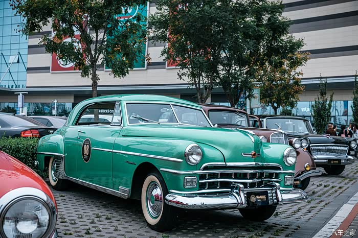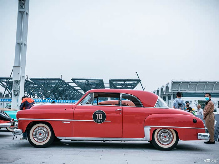 来自1950年的08#号车——克莱斯勒温莎。以其独特时尚的造型成为当时汽车设计领域的新标杆,引领了美国60-70年代汽车设计新风潮。鲜艳的车身和大面积的镀铬部件尽现当时美国汽车在豪华设计领域的强大功力。