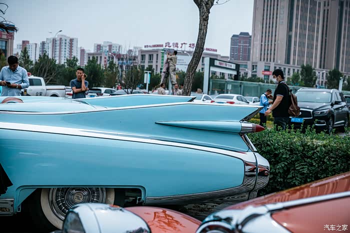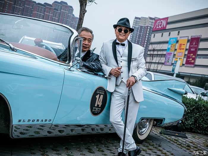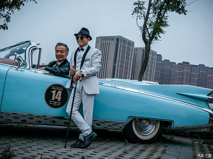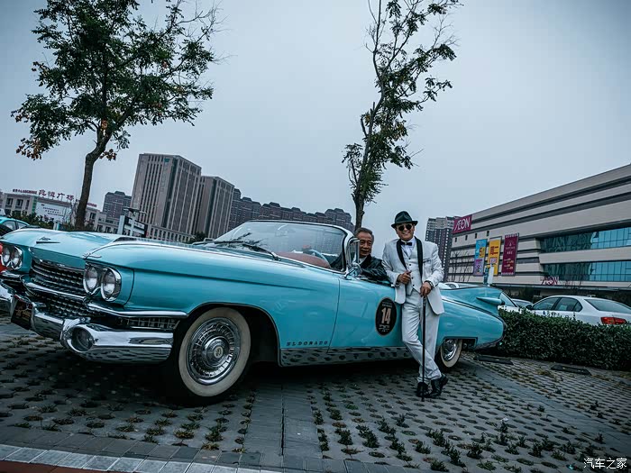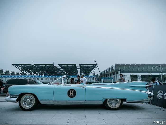 停在我们边上的,则是14号车,1959年的凯迪拉克埃尔多拉多,超长的车身,超靓的颜色,潮酷的颜值,让他成为本次老爷车队中关注度比较高的一款经典车。
