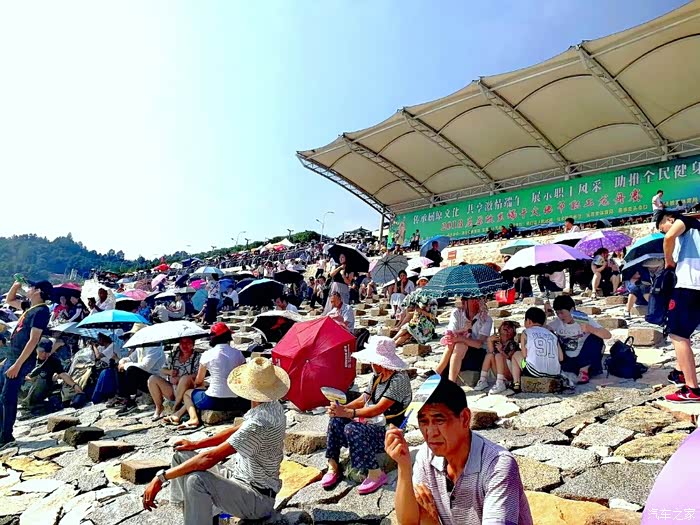 纪念仪式结束后,我们来到了长江边的划龙舟现场。这里已经聚集了很多观众。