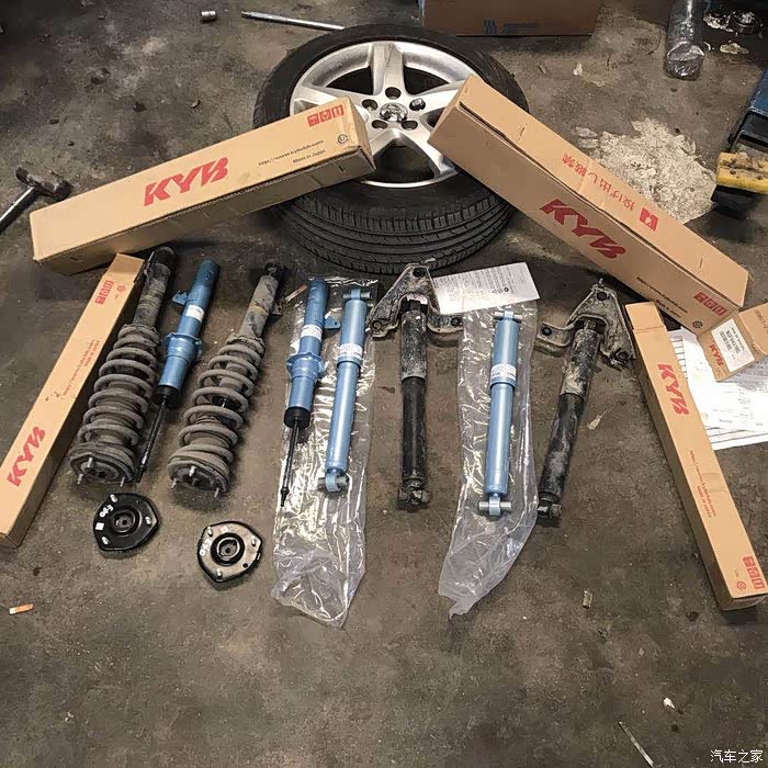 正品KYB减震器全家福。不用担心假的,因为实在没多少人会想到要买这东西。朋友的维修厂还是第一次有客户要求装。