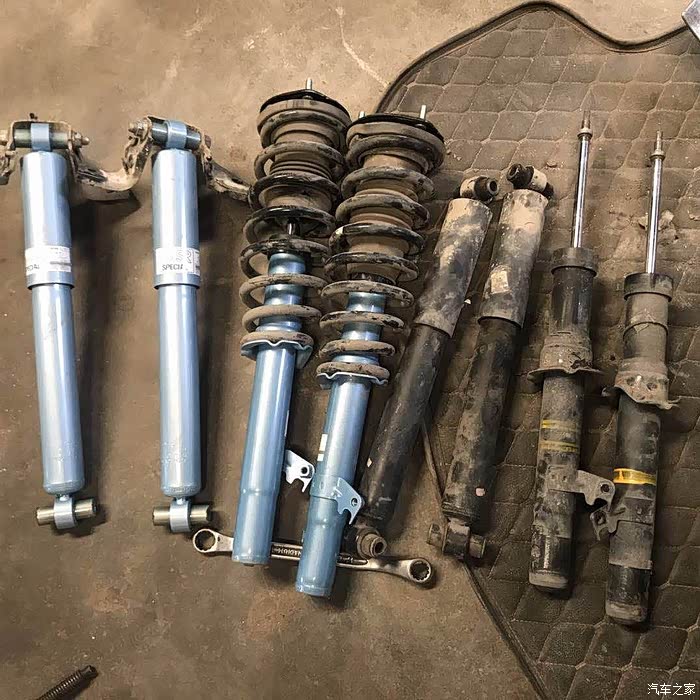 在拆下之后,东机工减震全套5年没有漏油,不过比较软,可以用轻松用身体力量压缩。每对减震回弹均匀。但是实际上遇到减速带、过坑的时候,遇到颠簸会多了一下余震,感觉稍微不爽。如果对驾驶不计较的话,完全不必更换,不仔细感觉的话不会感觉很明显。