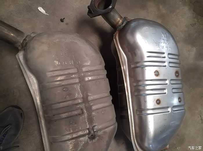 左侧尾鼓由于长期积水,内部生锈,隔板生锈脱落。起步或者颠簸就铛铛响,一幅喇叭不响车响的样子。也彻底换了。由于不在乎排气声音,换了个副厂件。装上开起来也没大分别。