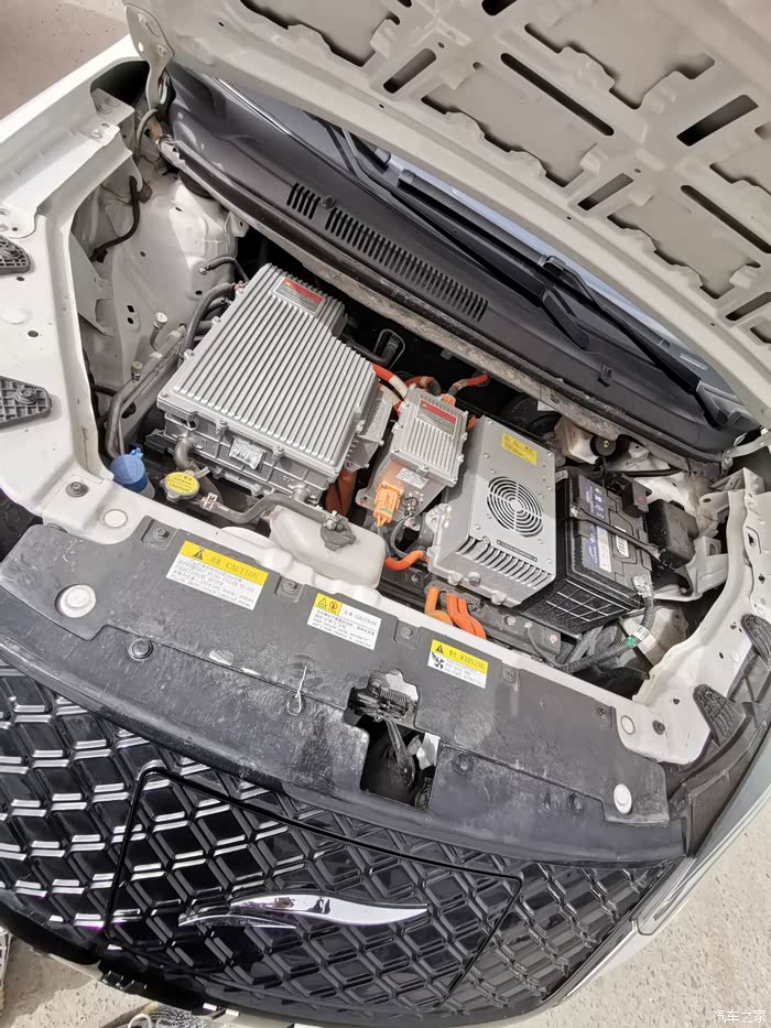 看一眼新能源车的前盖底下是个什么布局。我不大懂车,不过看上去跟传统车挺不一样。