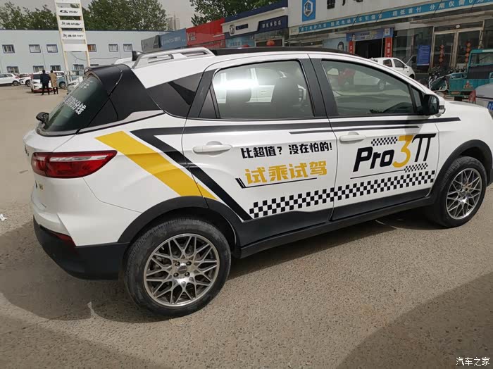 车侧面腰身够丰满,而且有收腰的线条,车子不臃肿。试驾车贴的标语,比超值?没在怕的!我的解读是,他已经表明了他的卖点,就是经济好用